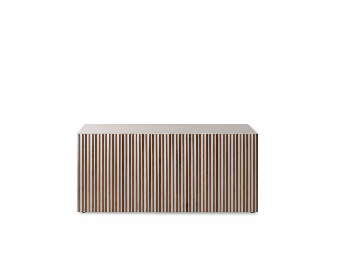 Il frontale della madia offre un sorprendente effetto ottico. Cambia colore a seconda che lo si osservi dal lato destro o dal lato sinistro.
